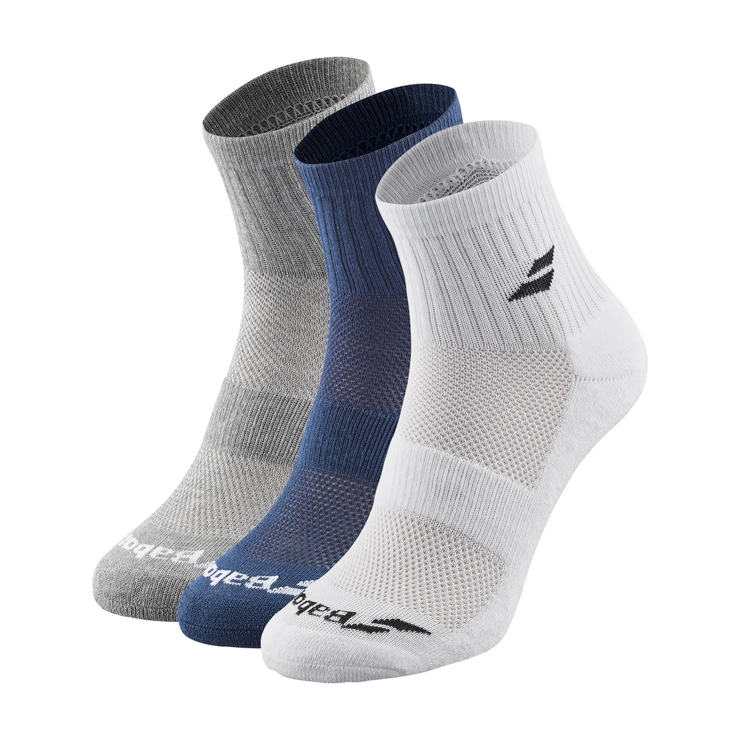 Babolat 3-pair sock set is a reliable choice for sports and active leisure. Lightweight, breathable and comfortably fitting socks are designed to ensure comfort and dryness during intense training and competitions.