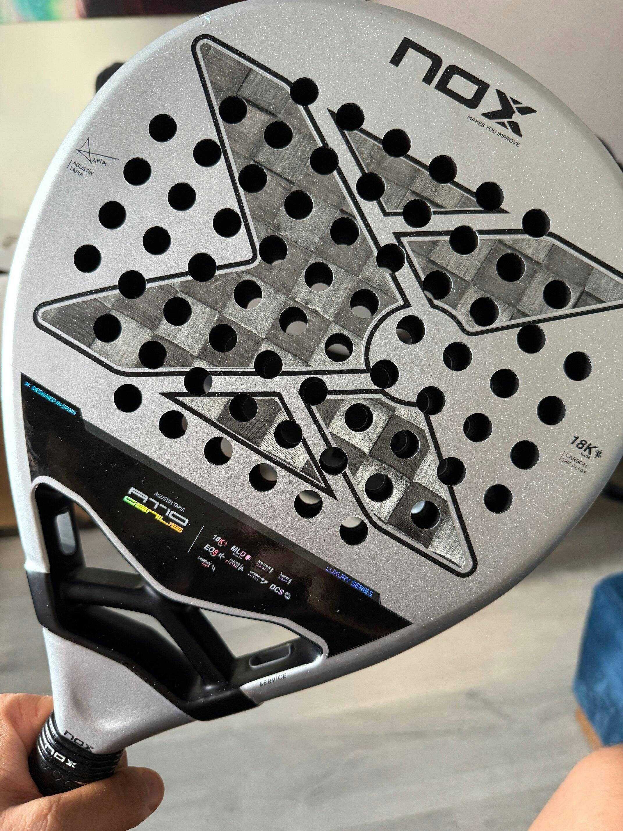 NOX AT10 Genius 18K 2024 – oficiali Agustín Tapia raketė, sukurta žaidėjams, kurie nori idealaus galios ir kontrolės derinio. Lašo forma suteikia puikų balansą tarp puolimo ir gynybos, o aukštos kokybės 18K anglies pluošto paviršius garantuoja tvirtumą, stabilumą ir precizišką kamuolio pojūtį.